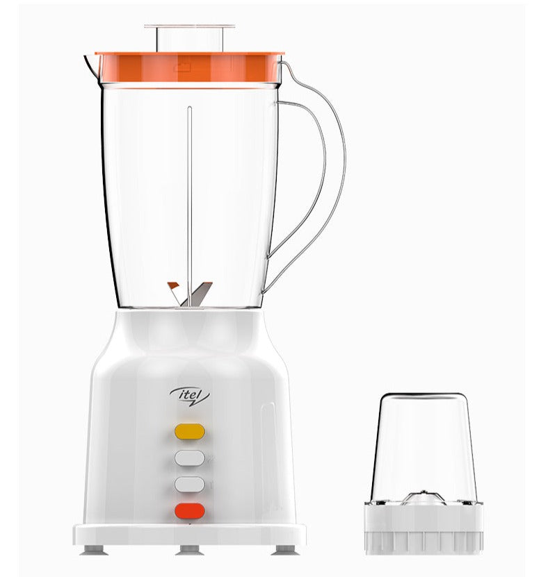 Itel Electric Blender, Grinder, Mixer is made to suit your need. The blender has a 1.5 Liter jug/cup and an extra mill cup. The blender has 4 durable stainless steel blades with 18,000 rpm which helps to grind tomatoes, peppers, and other fruits and vegetables into pastes, smoothies, and juice smoothly and fast.